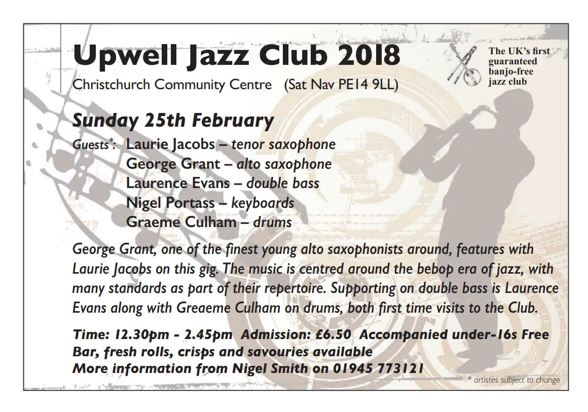 Venue: Upwell Jazz Club, Christchurch Community Centre PE14 9LL